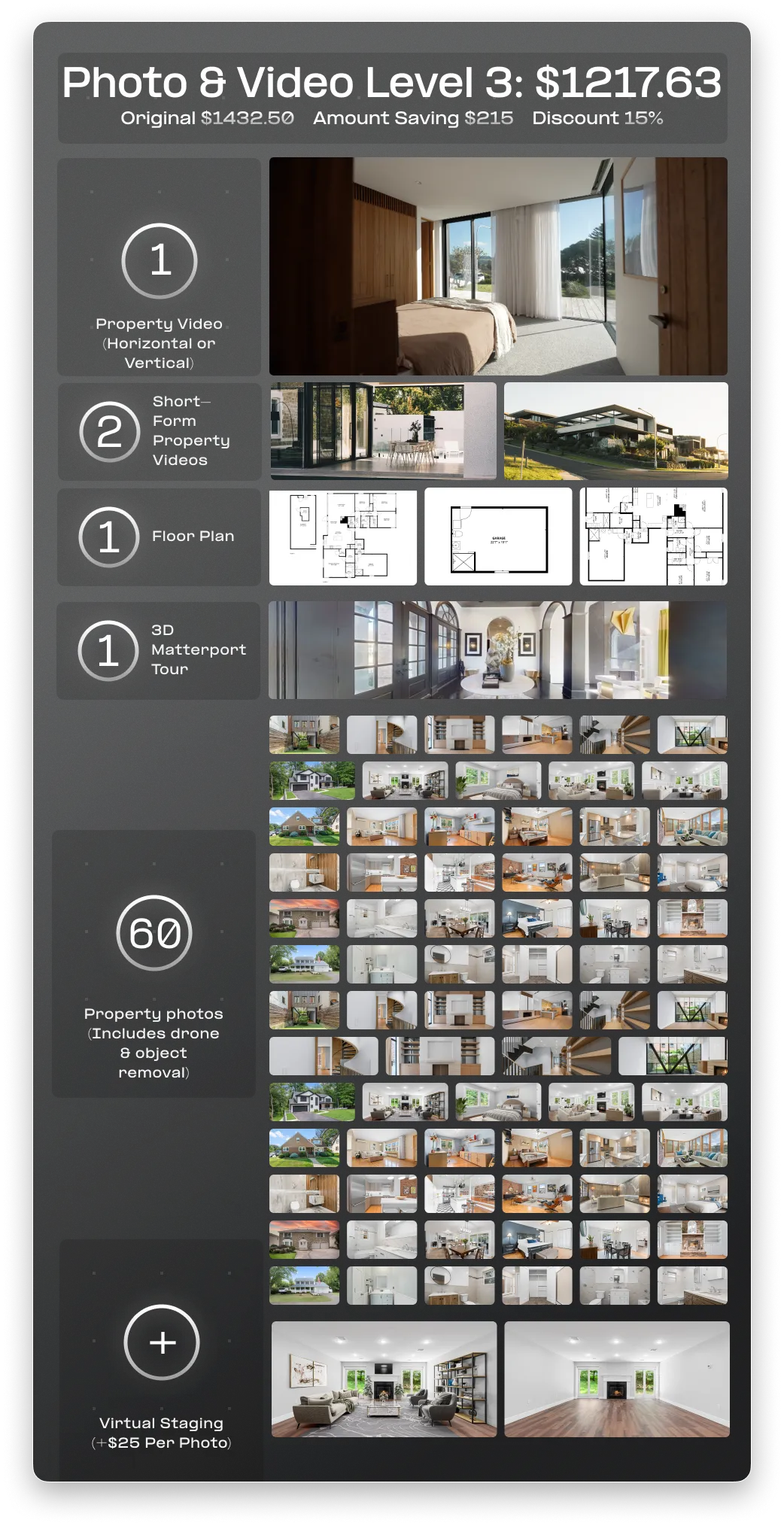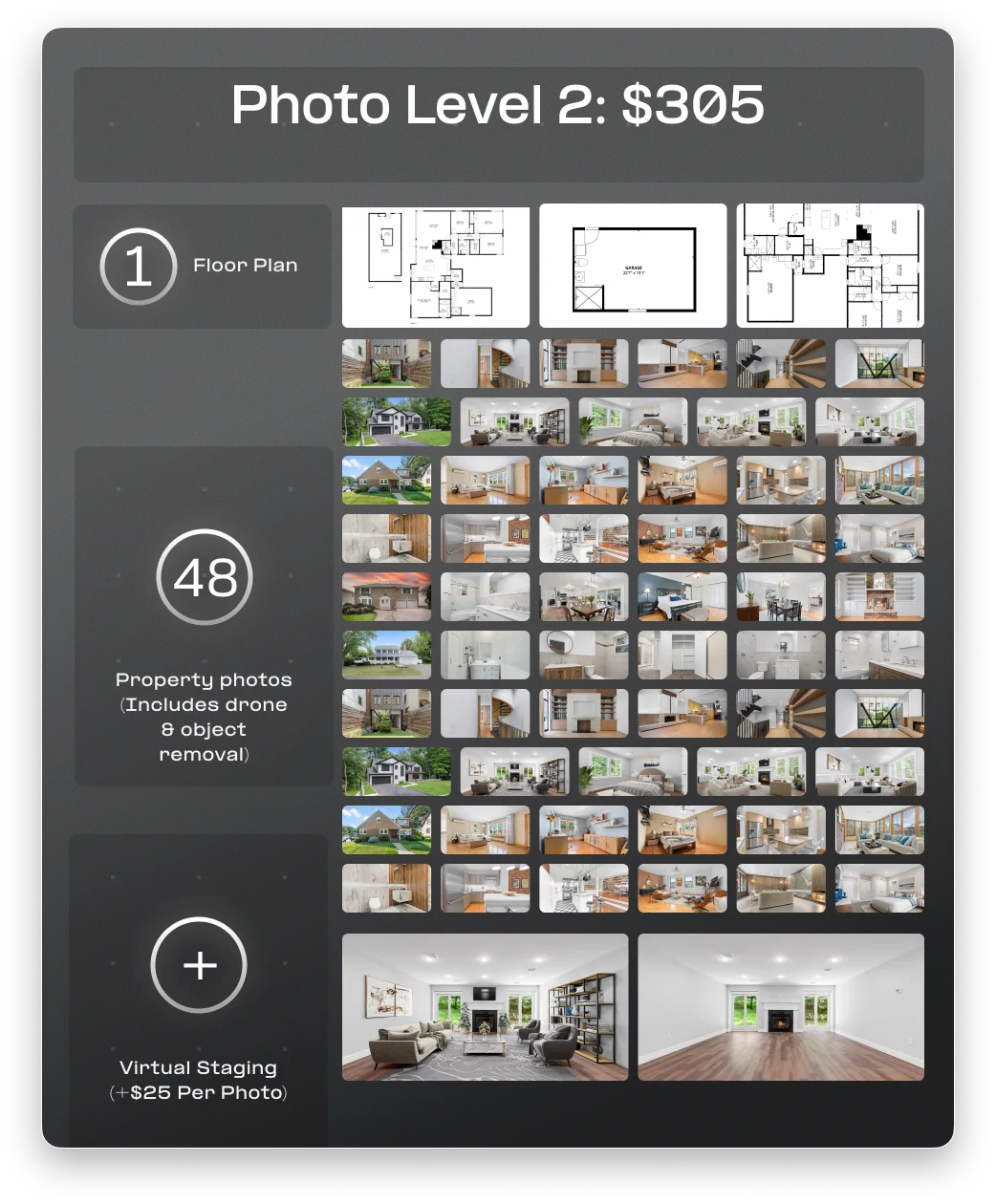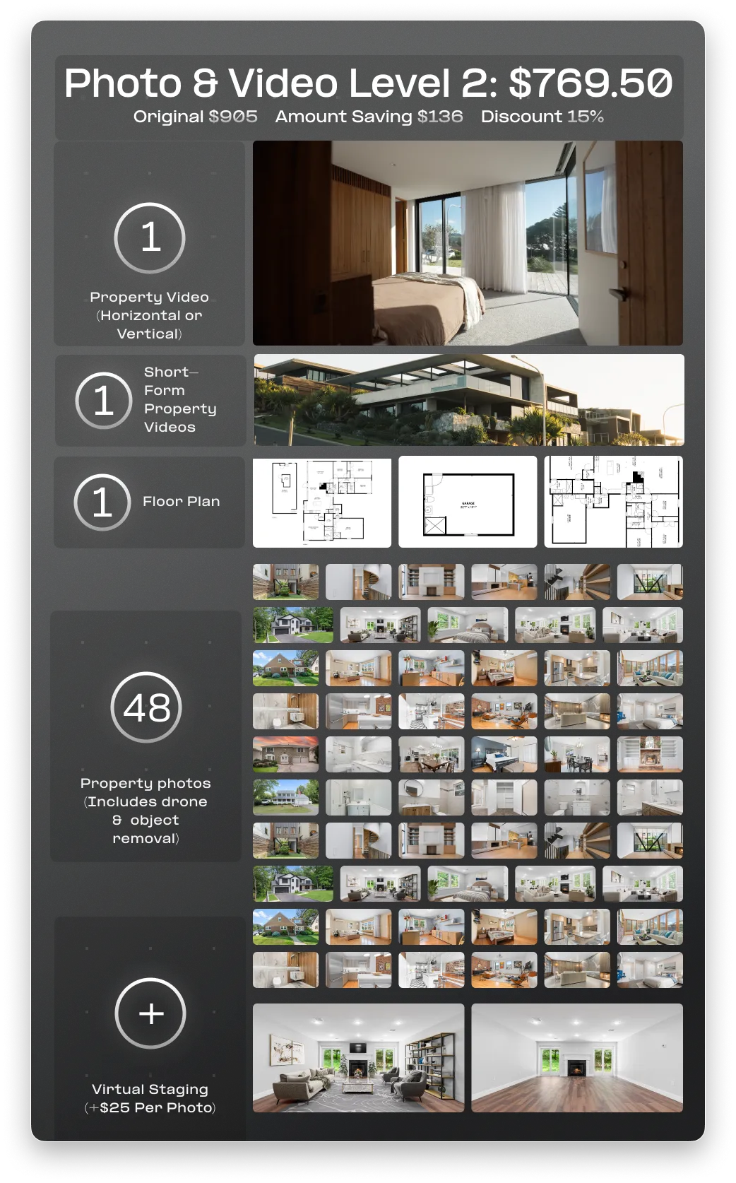 No catch. You can claim either a Tier 1 photo shoot or a Tier 1 video 100% free as a new client. No credit card required. No fine print.